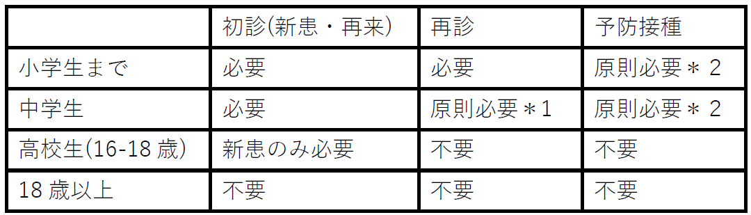 *2:中学生までの予防接種は、保護者の同伴をお願いしております。